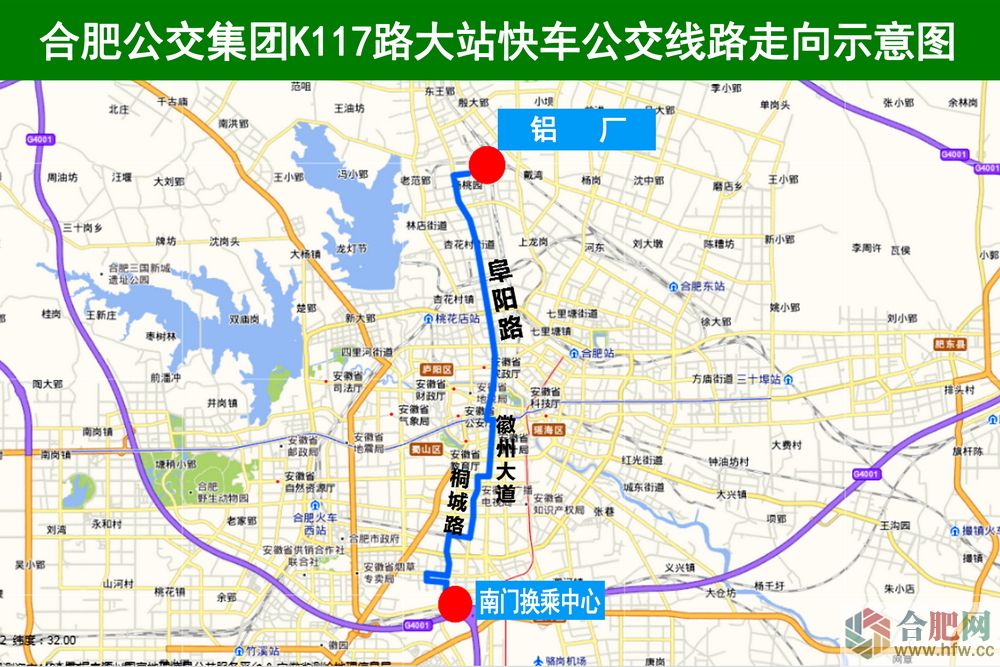 合肥公交集團K117路大站快車公交線路走向示意圖