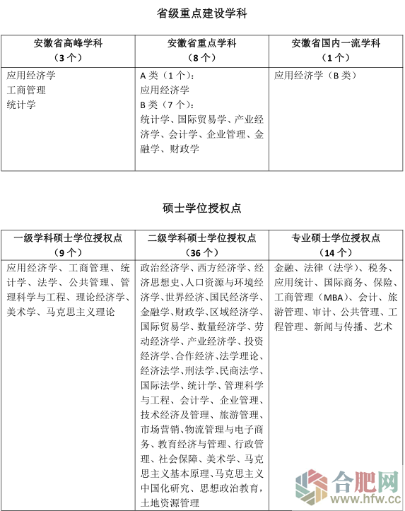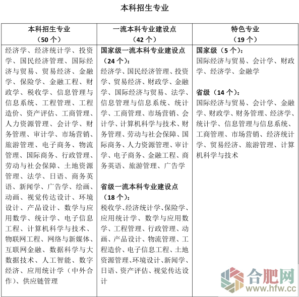 學校堅持育人為本。建校以來,累計為國家和社會培養各類人才18萬余人。學校目前在全國31個。ㄊ小⒆灾螀^)一本批次招生,現有全日制本科生、研究生20317人,繼續教育學生1萬余人。現有50個在招本科專業,其中國家級一流本科專業建設點24個、省級一流本科專業建設點18個,一流專業占比位居安徽省高校第2,F有5門課程入選首批國家一流課程、1門課程入選首批國家級課程思政示范課程。學校學生在學科競賽中的成績,位列2017至2021年全國普通高校大學生競賽榜單人文社科類高校第3。學校不斷推進知識探究、能力提升、素質培養、人格養成“四位一體”人才培養體系建設,不斷深化“新文科”“新工科”人才培養改革,探索實踐“新經管”人才培養模式,致力于培養具有社會責任感、人文情懷、科學精神和國際視野的高素質創新型人才,畢業生受到社會廣泛認可。