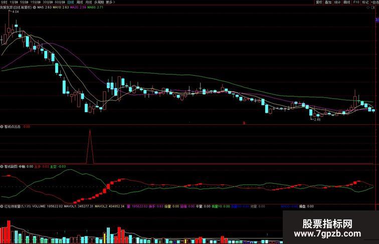 原理解析: {警戒源碼副圖源碼如下}VAR1賦值:(收盤價*2+最高價+最低價)/4 VAR2賦值:VAR1的13日指數移動平均-VAR1的34日指數移動平均 VAR3賦值:VAR2的5日指數移動平均 輸出中軸:0,畫白色,POINTDOT 輸出主多:2*(VAR2-VAR3)*3.8,LINETHICK1,畫紅色 輸出主空:(-2)*(VAR2-VAR3)*3.8,LINETHICK1,畫綠色 主多的50日[5日權重]移動平均 AH賦值:STICKLINE(2日前的主空<主空,主空,2日前的主空,5,0),畫黃色 輸出AK:STICKLINE(1日前的主多<主多,主多,1日前的主多,3,0),畫紅色 {警戒源碼附圖選股源碼如下}B1賦值:(5日內H最高值-C)/(5日內H最高值-5日內最低價最低值)*100- 70 B1的9日[1日權重]移動平均 B3賦值:(C-9日內L最低值)/(9日內H最高值- 9日內L最低值)*100 B3的3日[1日權重]移動平均 B4的3日[1日權重]移動平均 B6賦值:B5-B2 如果B6>60返回B6-60否則返回0 1日前的CO AND C/1日前的C>1.03 AND (3日前的H-1日前的L)/C*100>10 AND B7>=1日前的B7,畫紅色